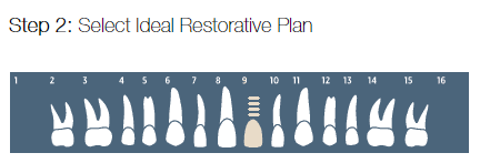 For the tooth chart on the right side (Ideal Restorative Plan), this is where the Doctor would ideally like to have the implants placed.  Click on the tooth once, to have a virtual implant placed there.