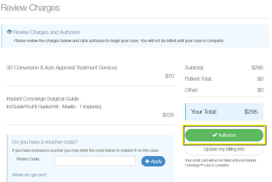 12.  You are then prompted to authorize that the case is placed into the queue for work up.  *This does not mean that your card on file will be charged*